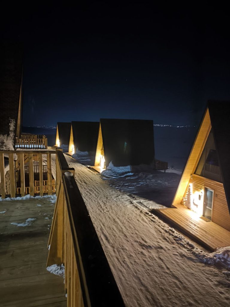.לינה — קיימים בקתות ושאלֶה בסגנון סקי אין סקי אאוט. בתכנון נבנים מלונות ברמה בינלאומית וקומפלקסים של דירות נופש